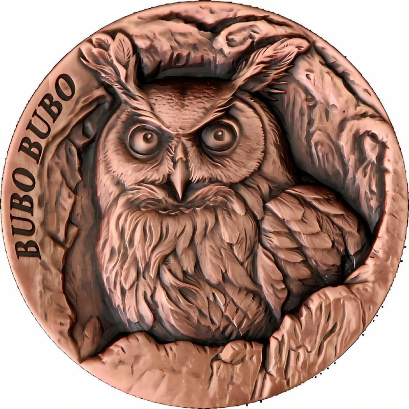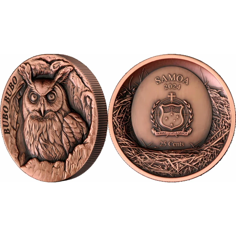 Copper coin Samoa "Hollow Tree. Owl", (high relief) 2024, 47,0 g pure copper