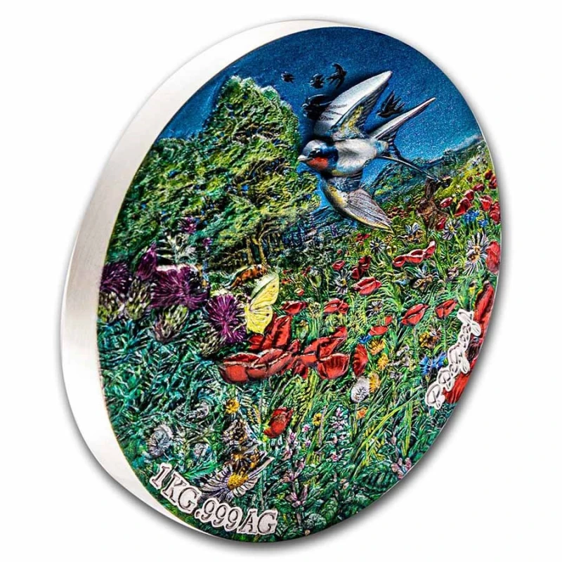 Benin silver coin "Nature in Danger. Flower Meadow" 2023, 1000 g. pure silver (0.999 proof)