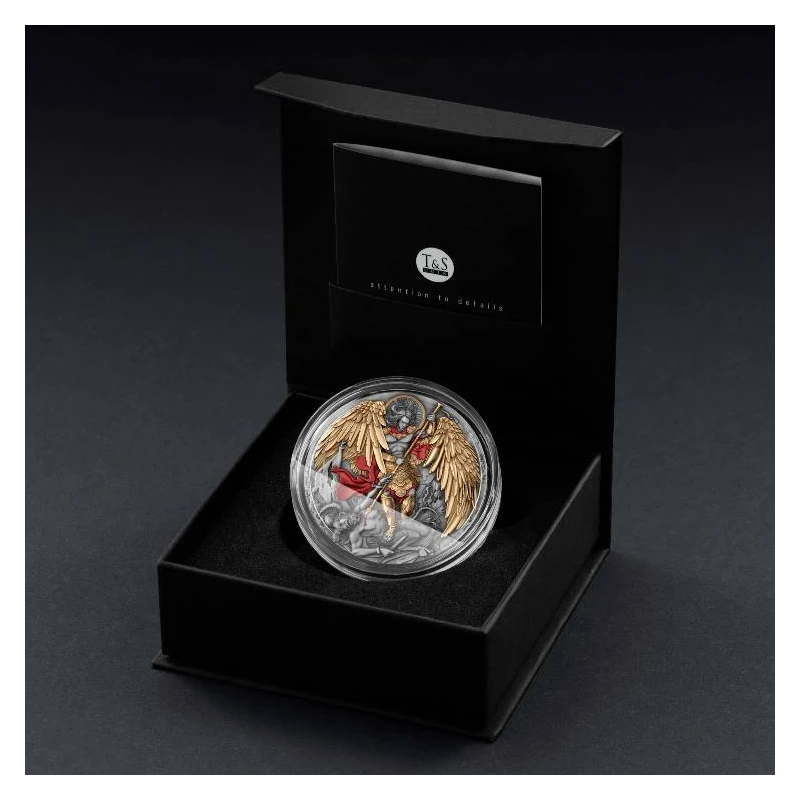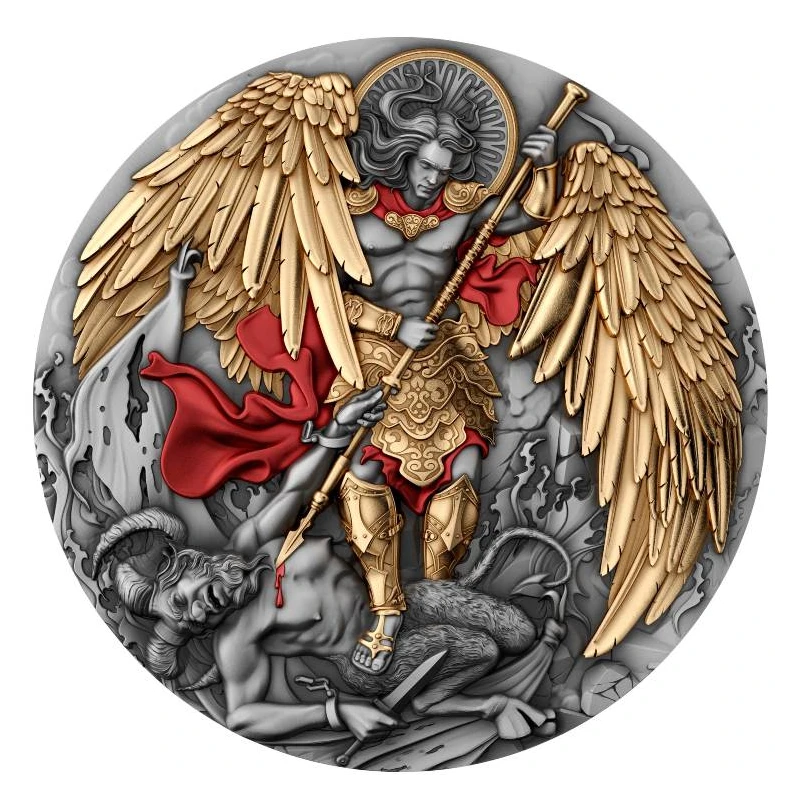 This unique 2 oz. silver coin is dedicated to the triumph of justice and the protection of mankind, embodied in the image of the mighty heavenly warrior of light, St. Archangel Michael. Wielding the sword of righteousness and justice, he symbolizes the victory of good over evil. The coin has an antique finish, is complemented by selective gilding and comes in a presentable case with a certificate of authenticity. The mintage is strictly limited - only 500 pieces worldwide.