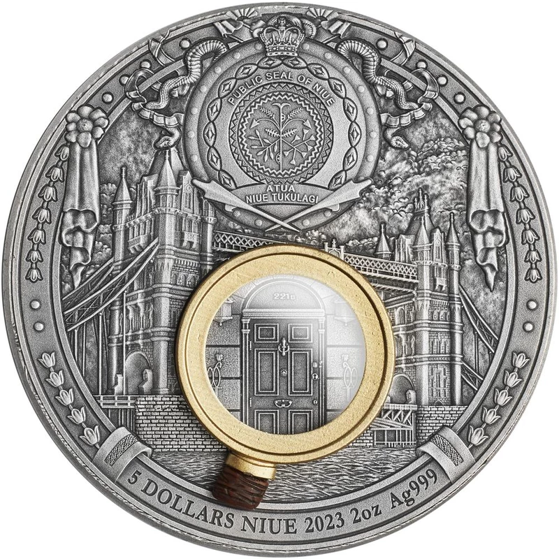 Silver coin Niue "Sherlock Holmes. Etude in Crimson" 2024g., 62.2 g. pure silver (0.999 proof)