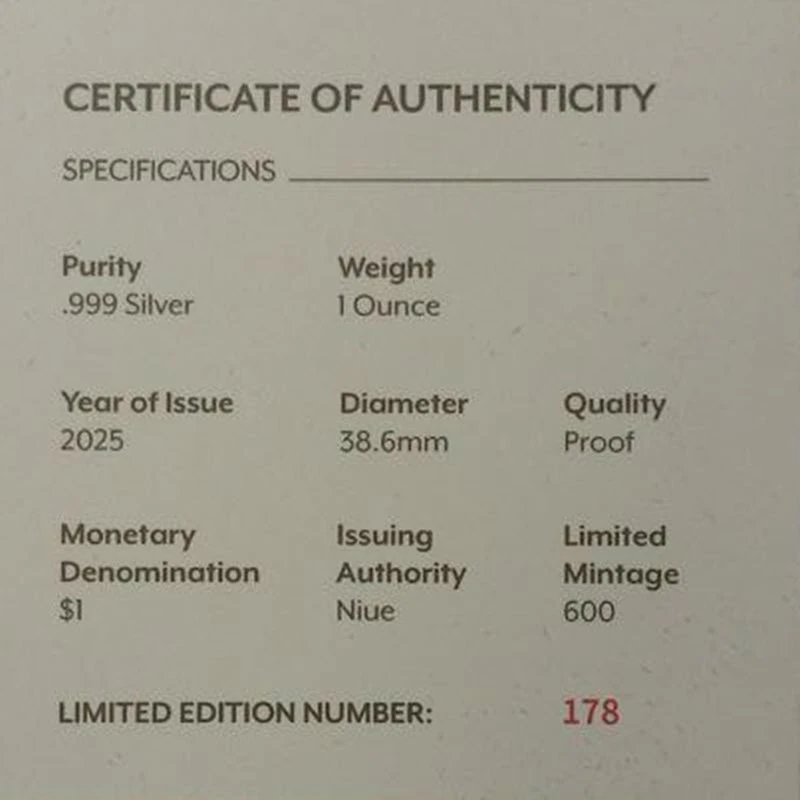 Silver coin Niue "Cranes" 2025 (proof), pure silver 31.1 g. (0.999 proof)