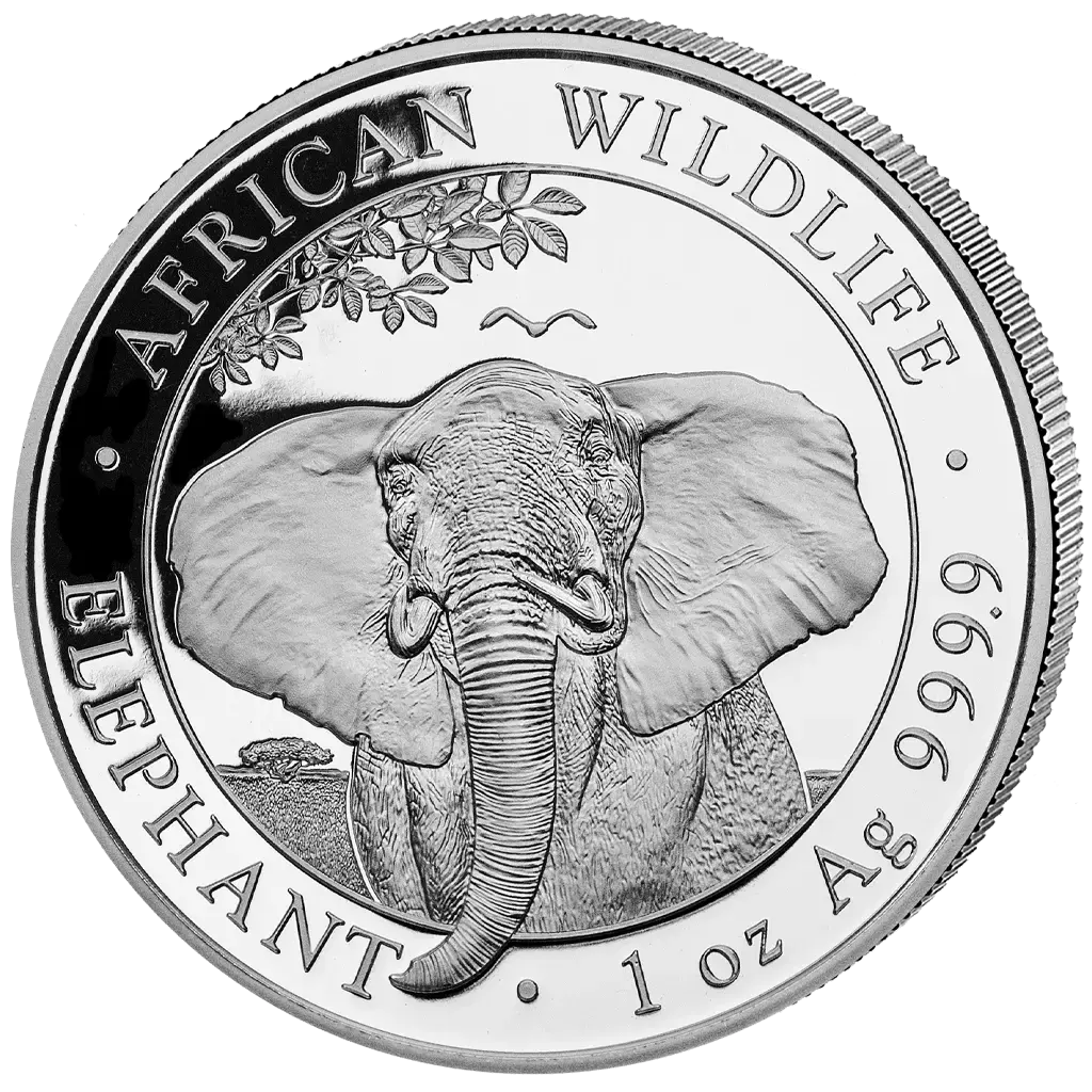 Diese 2021 im Rahmen der African Wildlife-Serie geprägte Silber-Anlagemünze besteht aus 1 oz Feinsilber 0,9999 und zeigt den somalischen Elefanten. Die Serie ist für ihre jährlich wechselnden Motive bekannt und stößt bei Sammlern und Anlegern auf großes Interesse. Die Rückseite zeigt das eindrucksvolle Porträt eines ausgewachsenen Elefanten vor der Kulisse der afrikanischen Savanne. Der Rüssel des Elefanten ragt über den Rahmen des Motivs hinaus, wodurch ein dynamisches Gefühl von Tiefe und Bewegung entsteht. Die Komposition unterstreicht sowohl die Kraft des Tieres als auch die künstlerische Innovation der Serie.