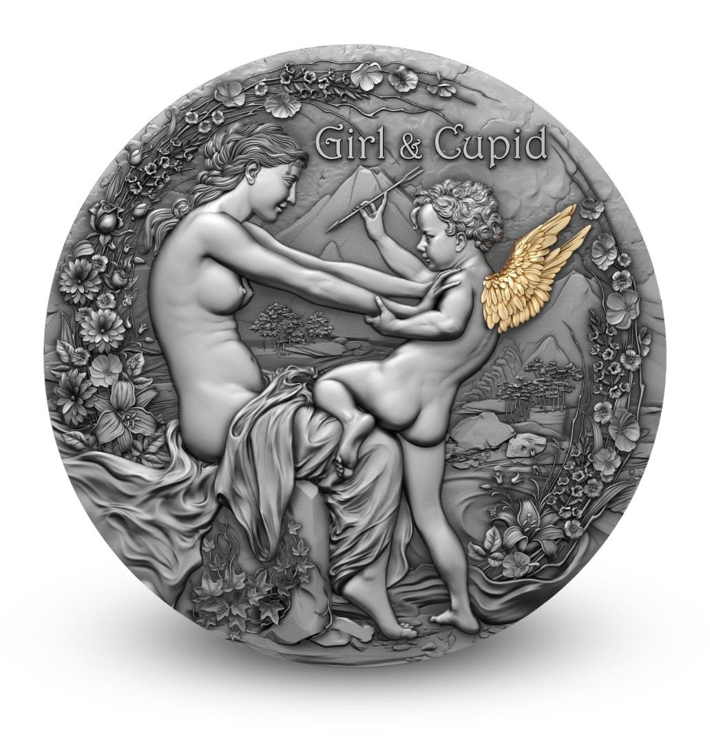 Kamerun: Silbermünze Mädchen und Amor 2023 2 oz Sammlermünzen