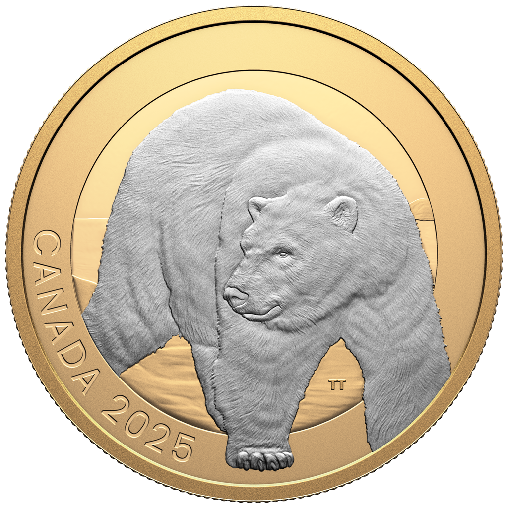 Kanada: Silber-Sammlermünze Tierportraits. Eisbär 2025 Proof, vergoldet, 31,39 g reines Silber (0,9999)