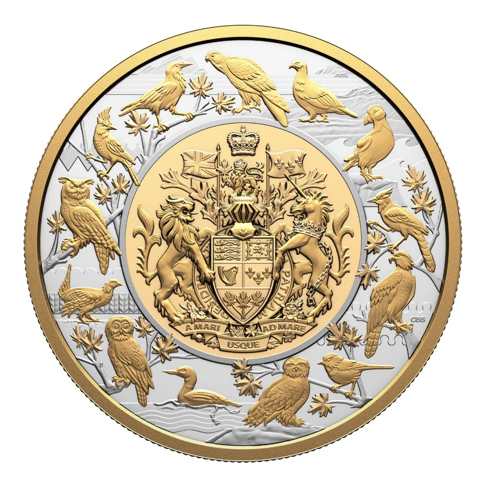 Kanada: сollectible Silbermünze Heraldic Landscape. Birds of Canada 2024, polierte Platte, vergoldet, 157,6 g reines Silber (0,9999)