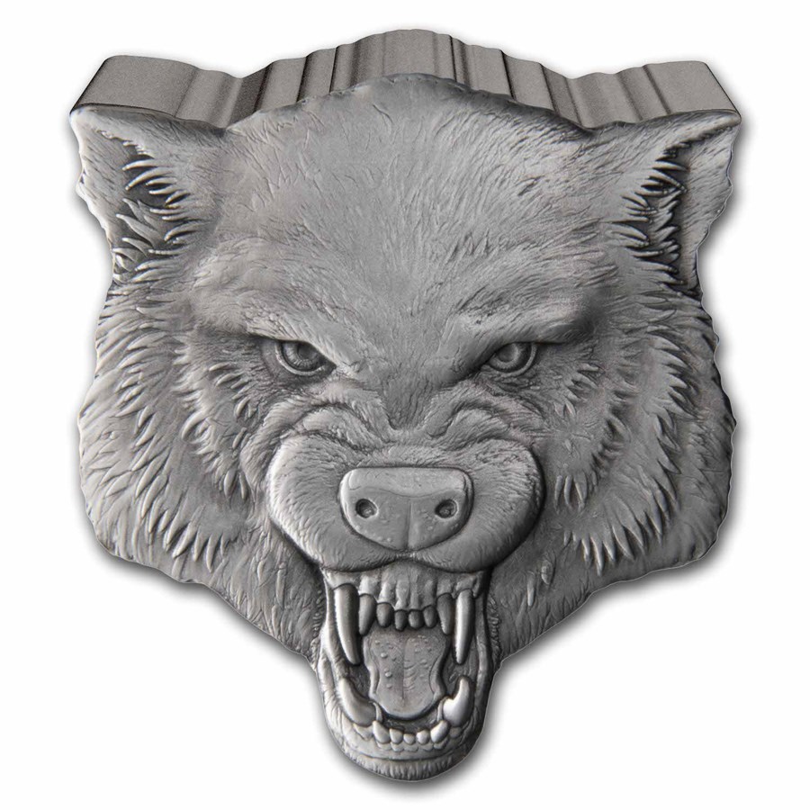 Silbermünze Niue "Wildlife: Wolf" 2023, 62,2 g reines Silber (0,999 Proof).