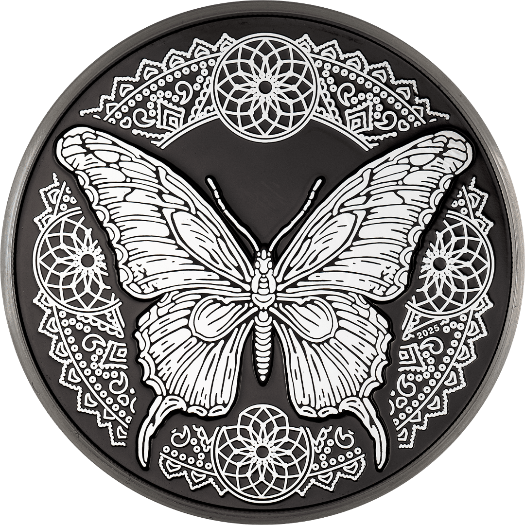 Cook Islands: Silber-Sammlermünze Butterfly 2025, Obsidian Black Proof, 31,1 g reines Silber (0,999)