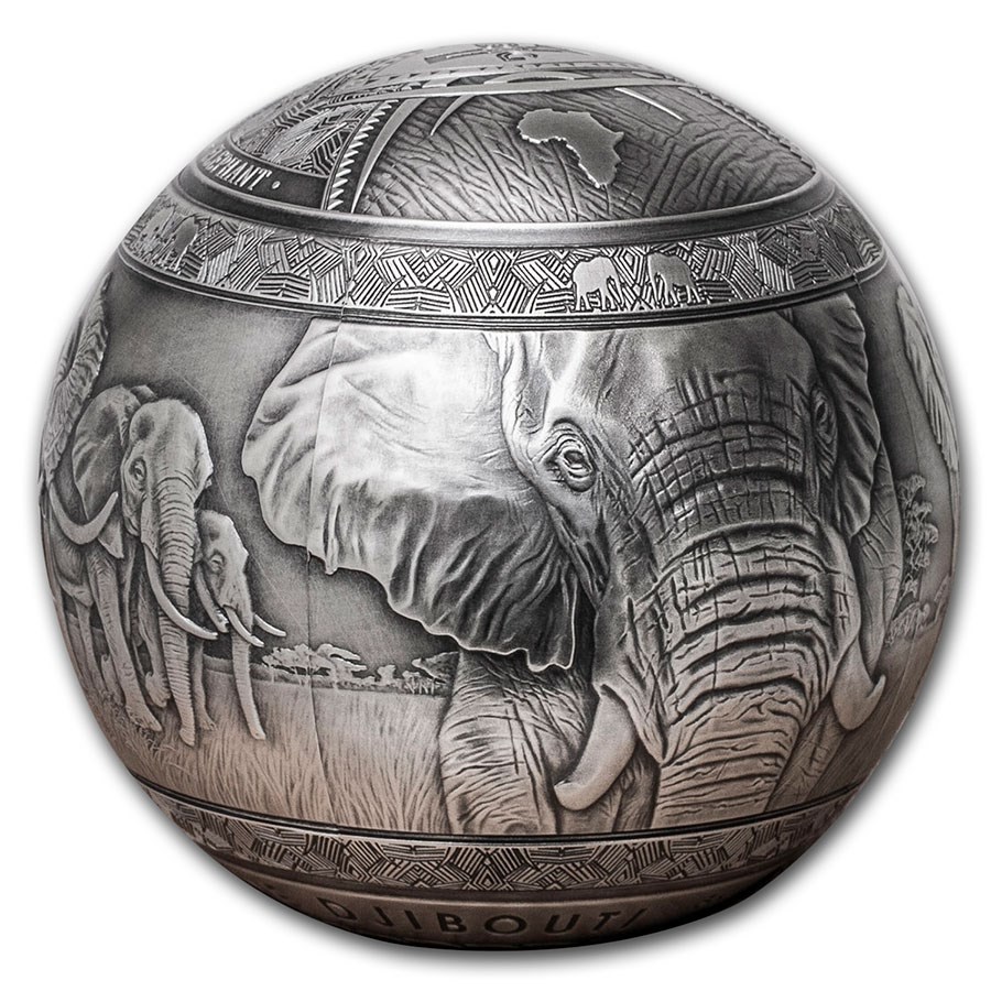 Diese beeindruckende 1-Kilogramm-Silbermünze ist einem der majestätischsten Tiere der Welt gewidmet - dem afrikanischen Elefanten. Die Münze hat eine einzigartige kugelförmige Form und eine antike Oberfläche, die die Tiefe und die Details des Reliefs hervorhebt. Auf der Rückseite ist ein Elefant in einer 360-Grad-Darstellung abgebildet, die die ganze Kraft und Anmut dieses Tieres zum Ausdruck bringt. Die Münze wird aus 0,999er Feinsilber geprägt und hat einen Nennwert von 1.000 dschibutischen Francs. Sie wurde in einer weltweit limitierten Auflage von 199 Exemplaren herausgegeben und wird in einem eleganten Etui mit Echtheitszertifikat geliefert.