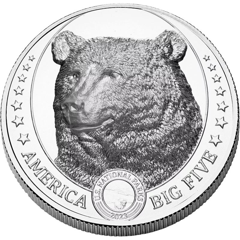 Fidschi Silbermünze Amerika Big Five Braunbär 2023 1 Unze reines Silber 0,999