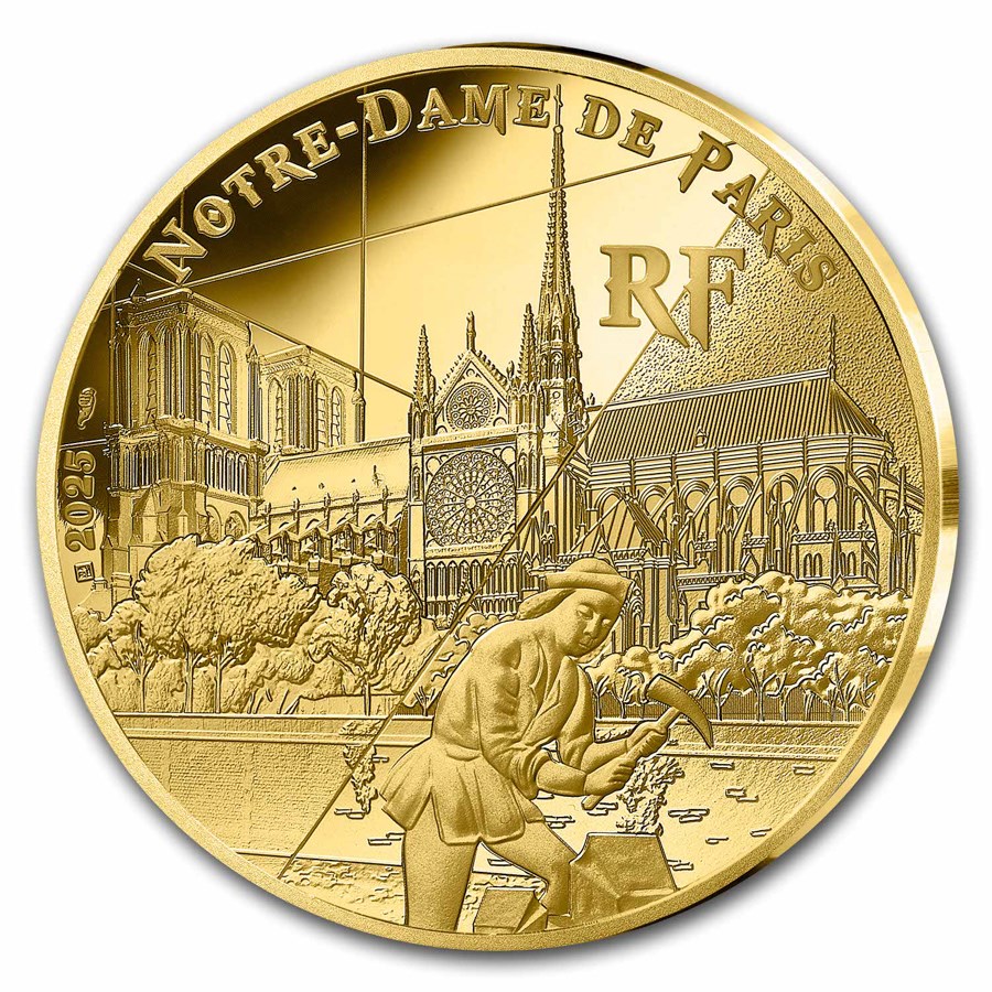 Dynamik der Preisänderung Frankreich: Goldmünze Notre-Dame de Paris 2025 Polierte Platte 1 Unze