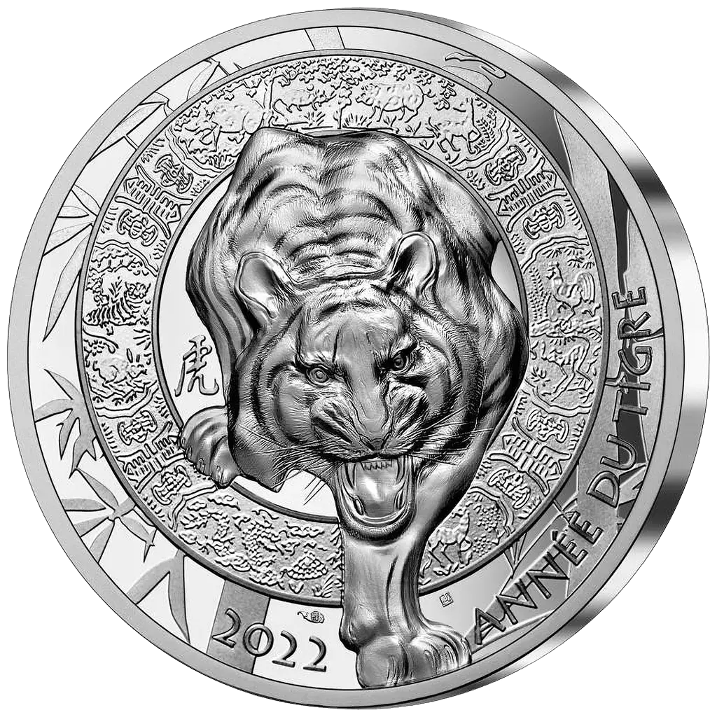 Dynamik der Preisänderung Frankreich Silbermünze Jahr des Tigers 2022 polierte Platte 1 oz