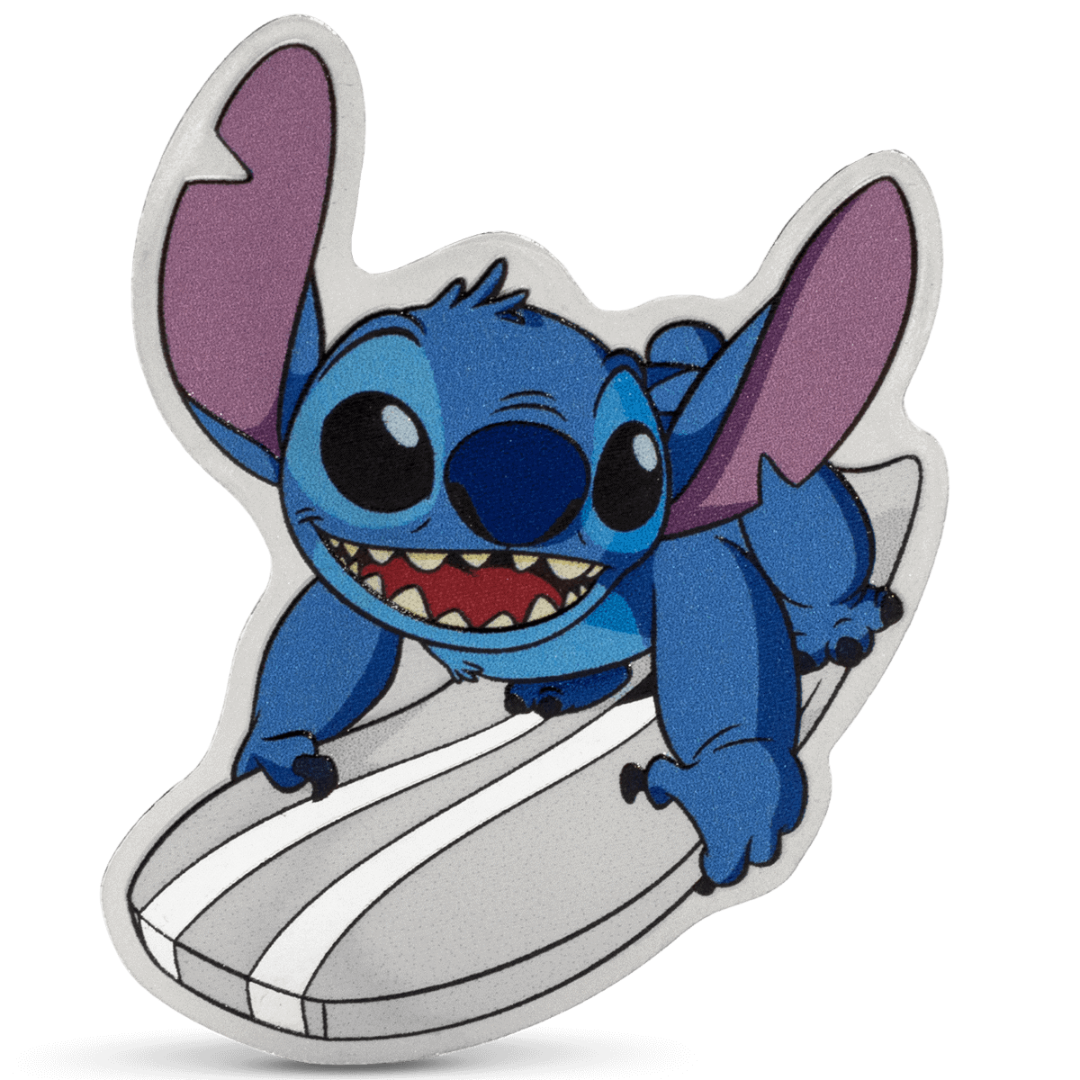 Niue: Silber-Sammlermünze Disney Stitch. Surf's Up 2025, Polierte Platte (koloriert) 31,1 g reines Silber (0,999)