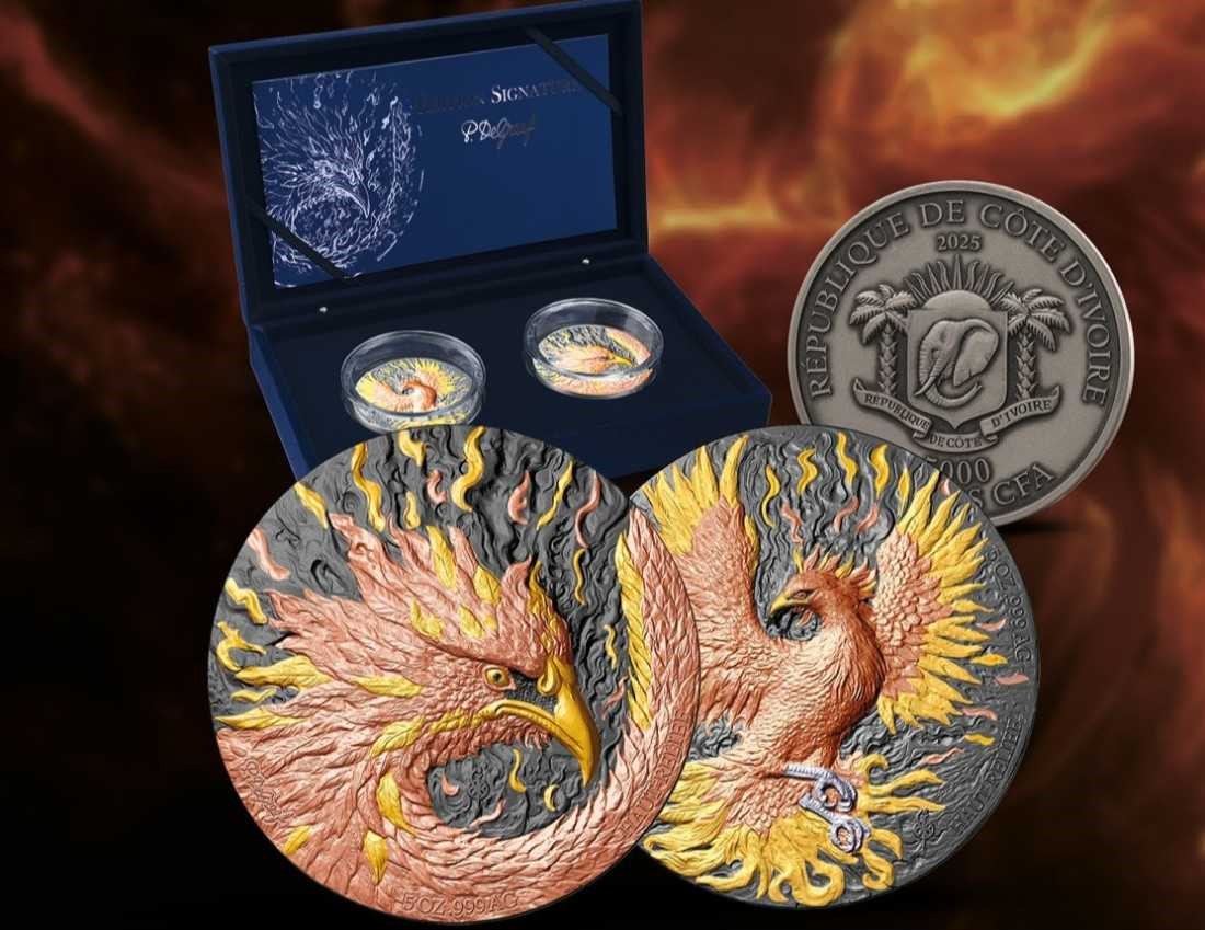 Republik Côte d'Ivoire: Silber-Sammlermünzen Phoenix 2025, 2er-Set*155,5 g reines Silber (0,999)