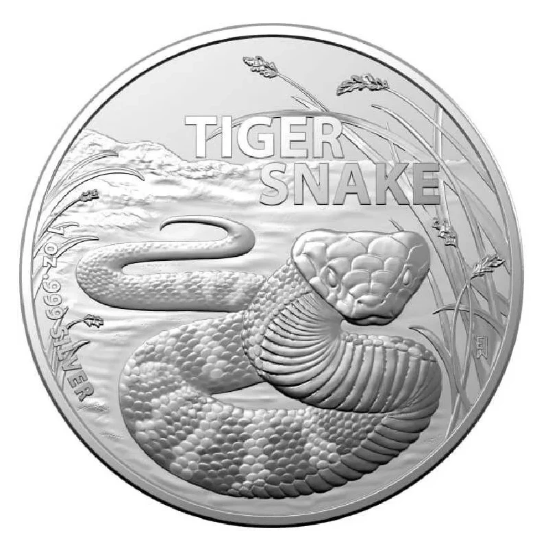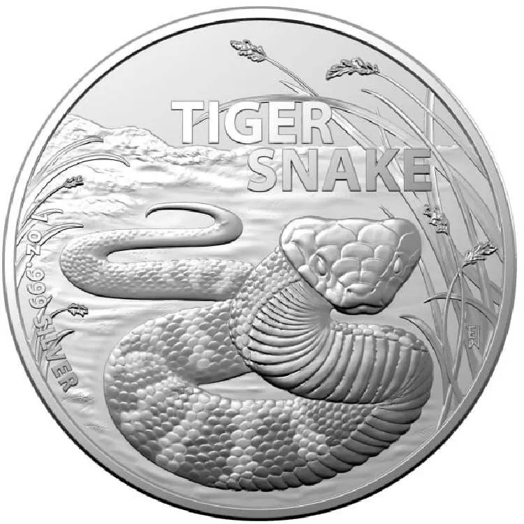 Australische Tiger Snake Silbermünze, 2024, 31,1 g. reines Silber. (0,999 Proof)