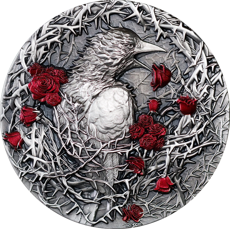 Silbermünze Gabun "Großer Dornenvogel" (Proof, Hochrelief) 2025, 93,3g. reines Silber (0,999 Proof)
