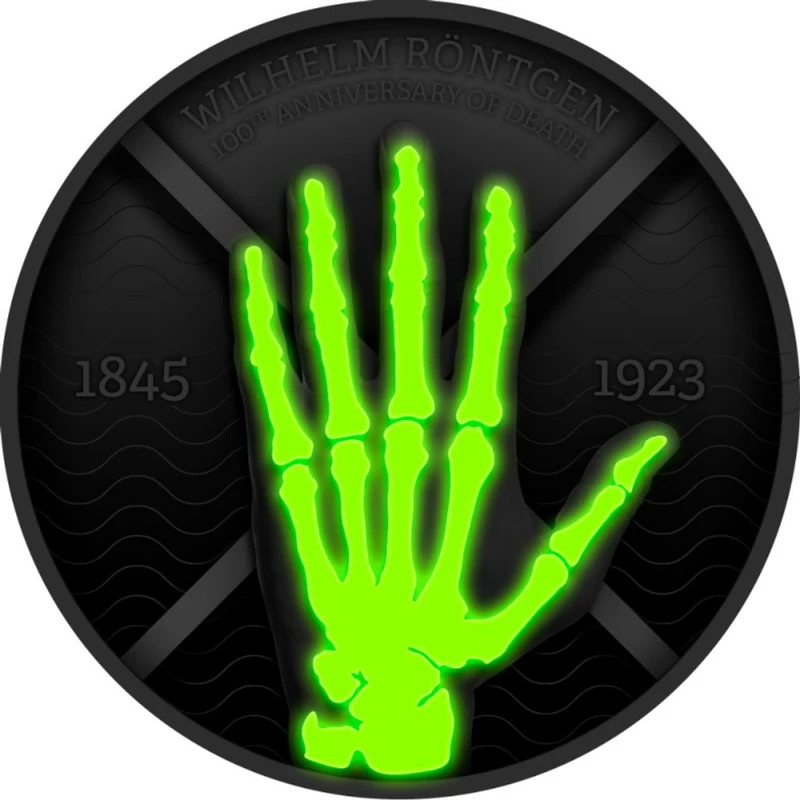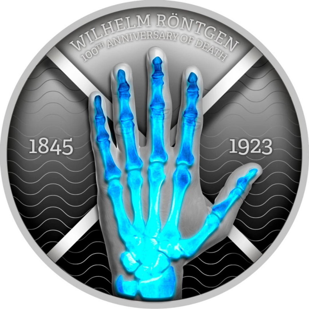 Silbermünze von Kamerun "Wilhelm Roentgen" (pruf), 2023, 17,5 g. reines Silber (0,999 proof).