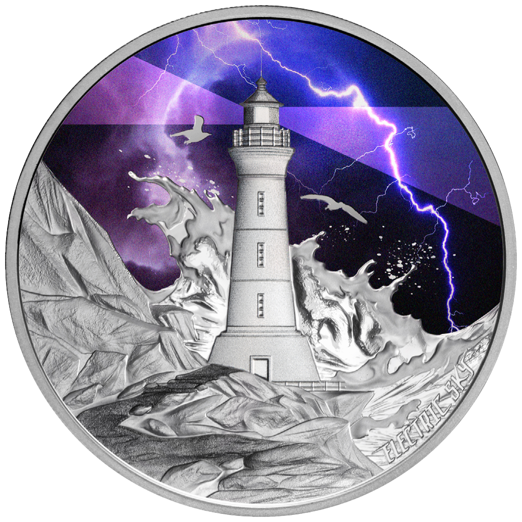 Niue Silbermünze "Electric Sky" (proof, koloriert) 2024, 31,1 g. reines Silber (0,9999 proof).