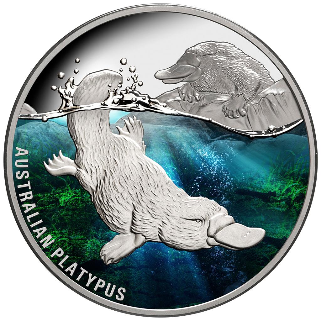 Eine wunderschöne Silbermünze in limitierter Auflage mit Tampondruck, die dem erstaunlichen Säugetier Schnabeltier gewidmet ist.