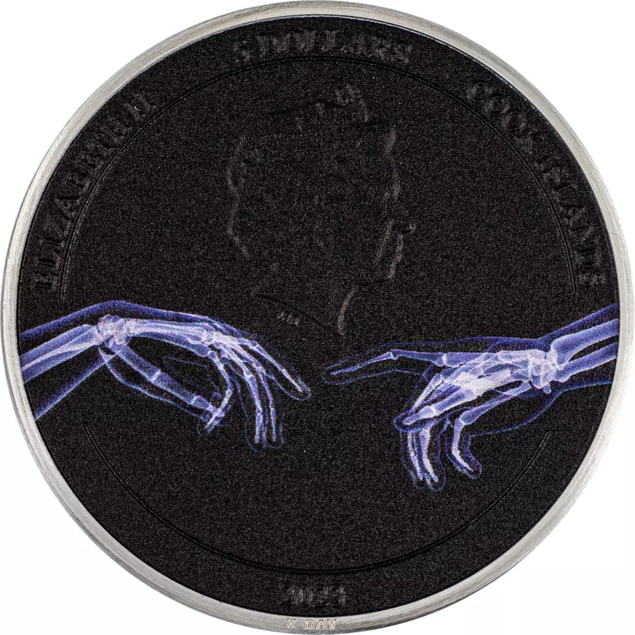 Cook Islands Silbermünze "Roentgen. Erschaffung Adams" 2023, 31,1 g. reines Silber (0,999 Proof)