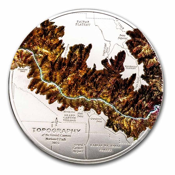 Cook Islands Silbermünze "Topographie - Grand Canyon", 2023, 155,5g, reines Silber (0,999 proof)