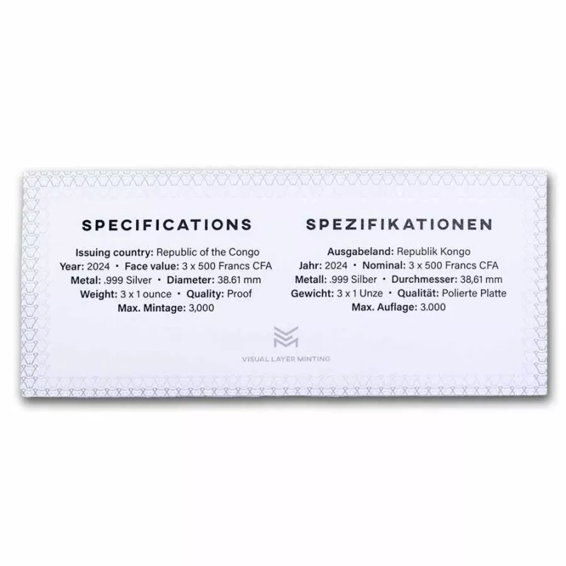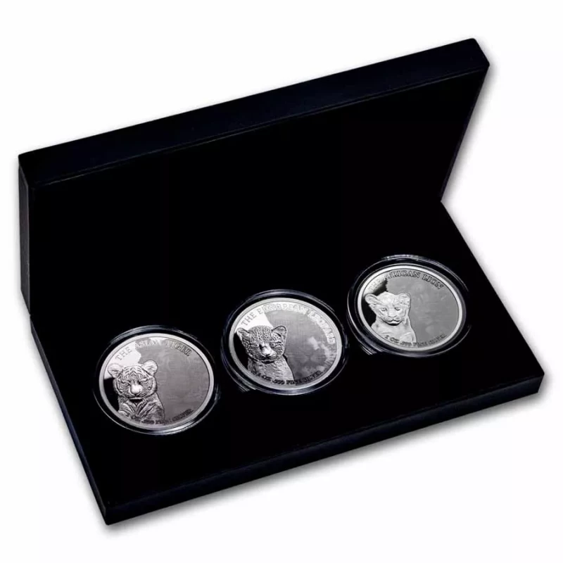Silbermünze der Republik Kongo "Wild Kittens" (Proof, Satz 3*31,1gr.) 2023, 3*31,1g. reines Silber (0,999 Proof)