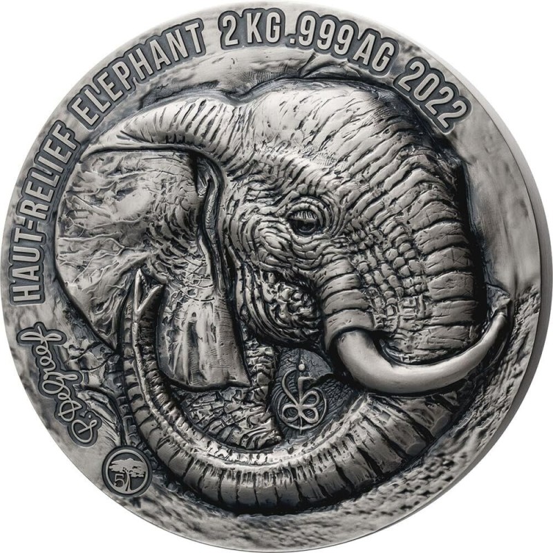 Republik Côte d'Ivoire: Silber-Sammlermünze Big Five. Elefant 2022, 2000 g reines Silber (0,999)