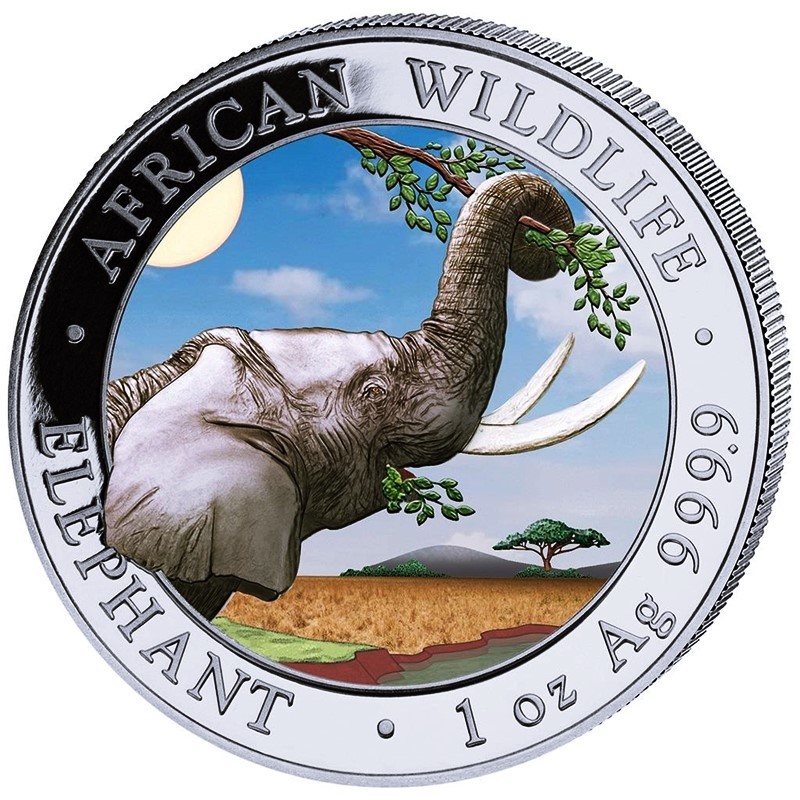 Dynamik der Preisänderung Somalia Silbermünze Afrikanische Wildtiere Elefant 2023 Colored Day Design 1 oz