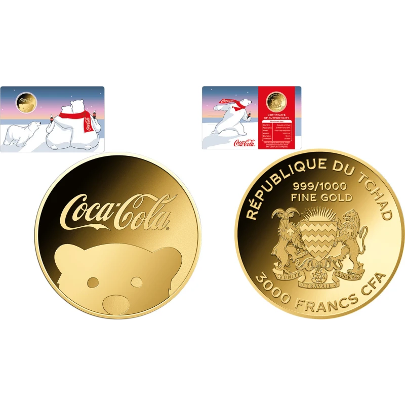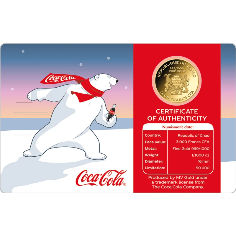 Chada Goldmünze "Coca-Cola. Eisbär" (Proof), 0,031 g. reines Gold (0,999 Proof)