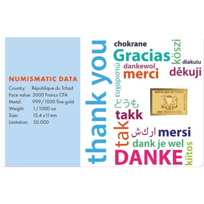 Chada "Thank you" Goldmünze (Proof), 0,031 g. reines Gold (0,999 Proof)
