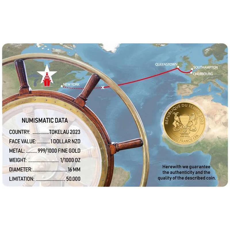 Chad's Goldmünze "Titanic" (Proof), 0,031 g. reines Gold (0,999 Proof)