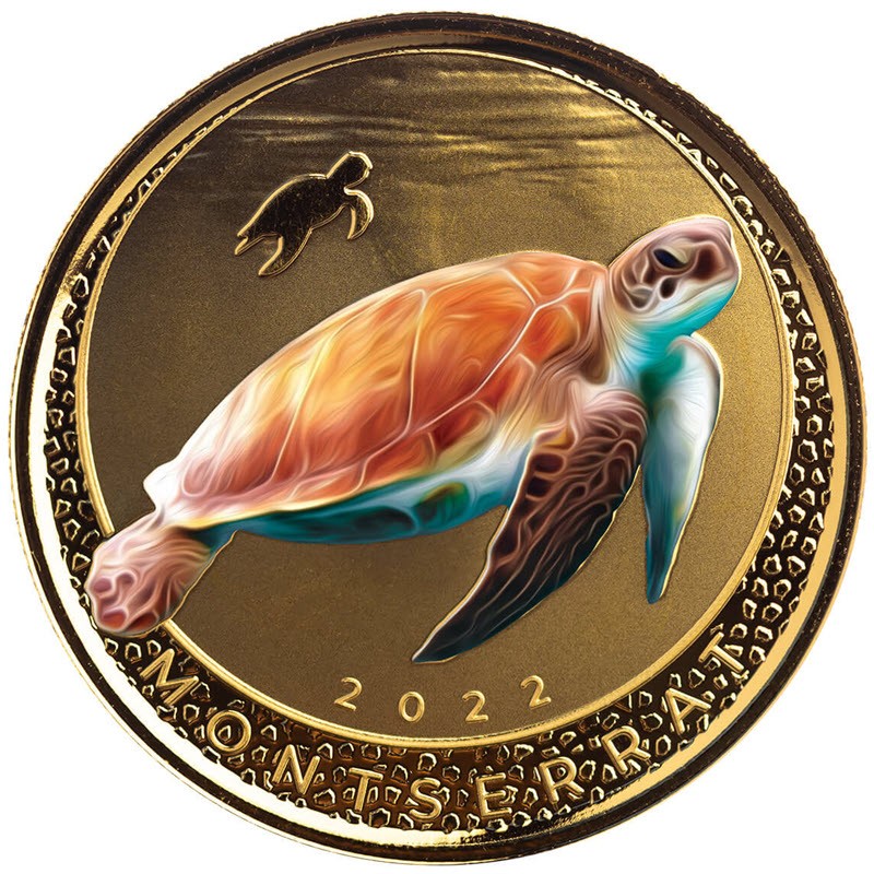 Montserrat Goldmünze "EU 8. Meeresschildkröte" (Proof, Farbe) 2022, 31,1g, reines Gold (0,9999 Proof)