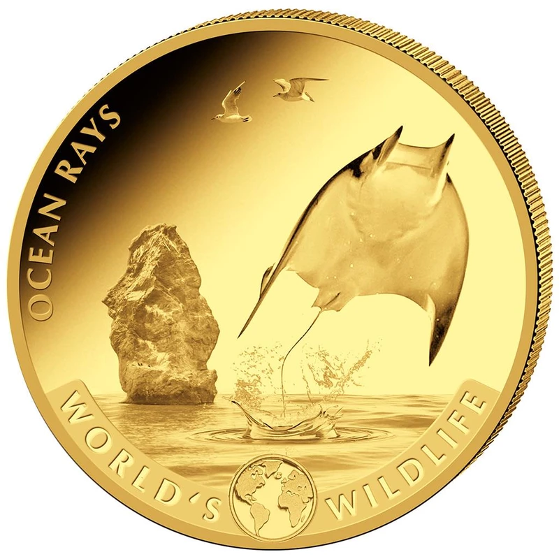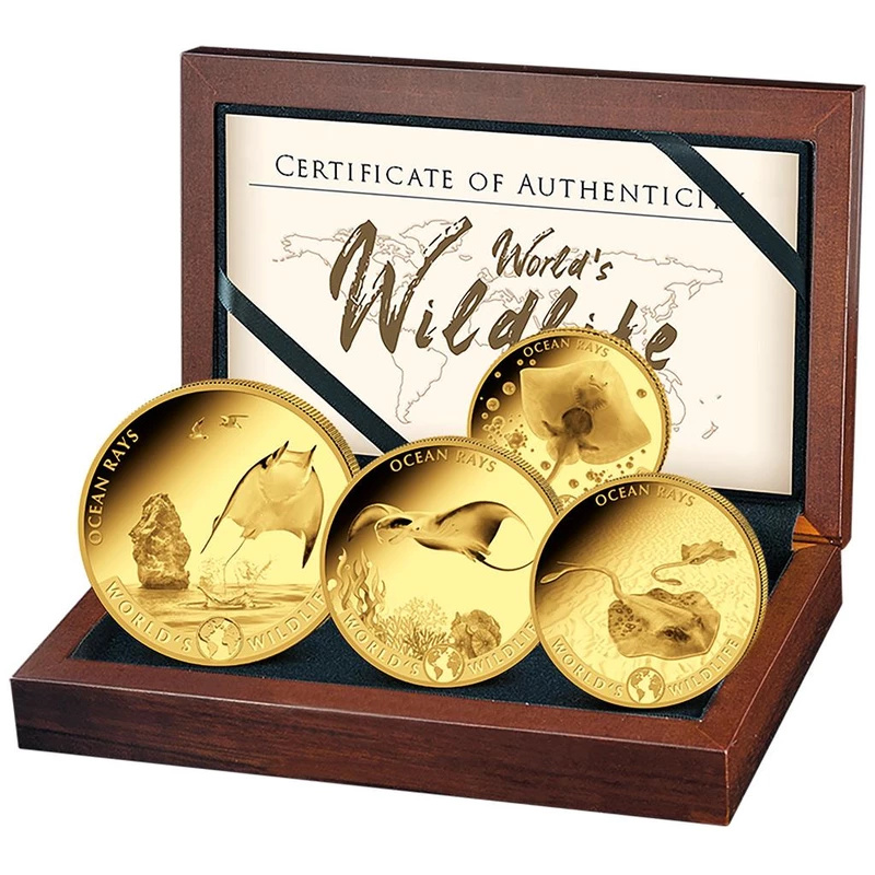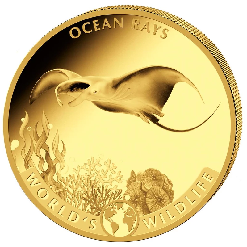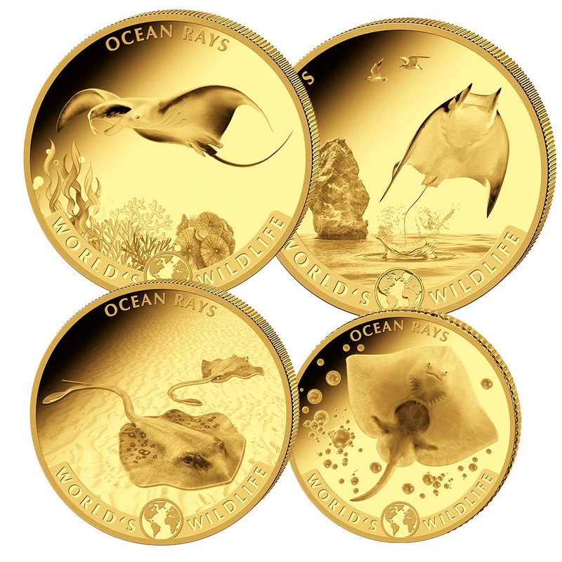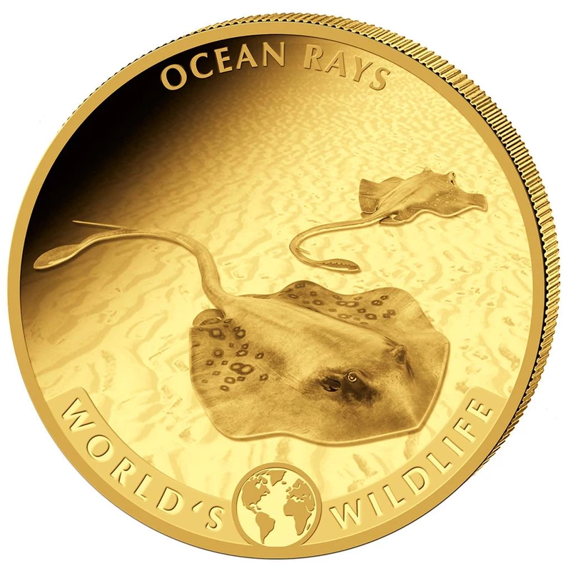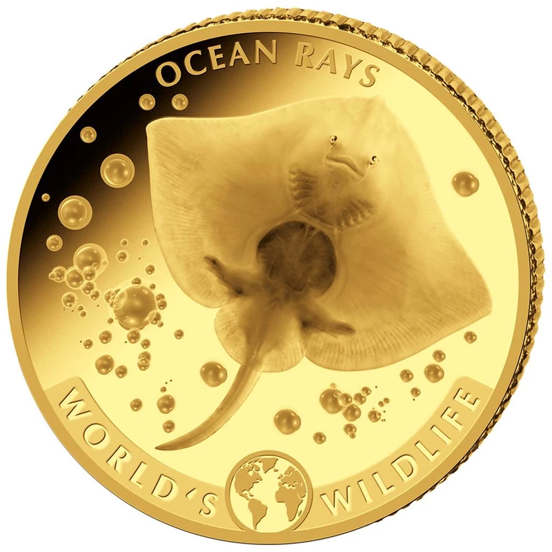 Goldmünzensatz der Republik Kongo "Wildlife of the World. "Stingray", 2023, 57,54 g reines Gold (0,9999 Proof)
