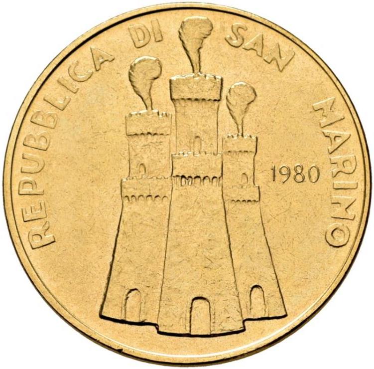 Dynamik der Preisänderung Goldmünze San Marino "5 Scudi" 1980, 15,0 g., reines Gold (0,917 Proof).